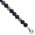 Stainless Steel Antiqued & Polished Lava Stone/Sodalite w/1in ext BraceletSRB2974-7.5