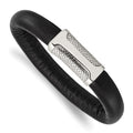 Stainless Steel Black Leather & Textured 8.5in BraceletSRB865-8.5