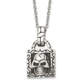 Stainless Steel Polished and Antiqued Skull NecklaceSRN1491-22