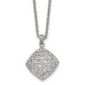 Stainless Steel Polished Clear and Pink CZ Square NecklaceSRN1584-18