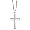 Stainless Steel Polished Grey Carbon Fiber Inlay Large Cross 20in NecklaceSRN1410-20